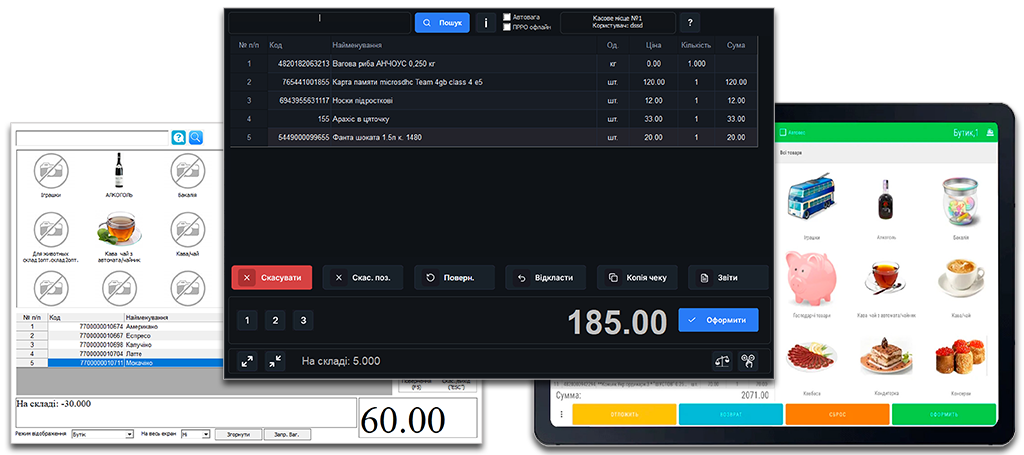 Працюйте з єдиною базою даних із пристроїв Windows та Android. Обидва касові модулі підтримують роботу з принтерами, вагами, і ПРРО.