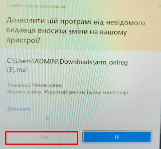 Тут достатньо натиснути на кнопку “ТАК” для продовження процедури встановлення програми.