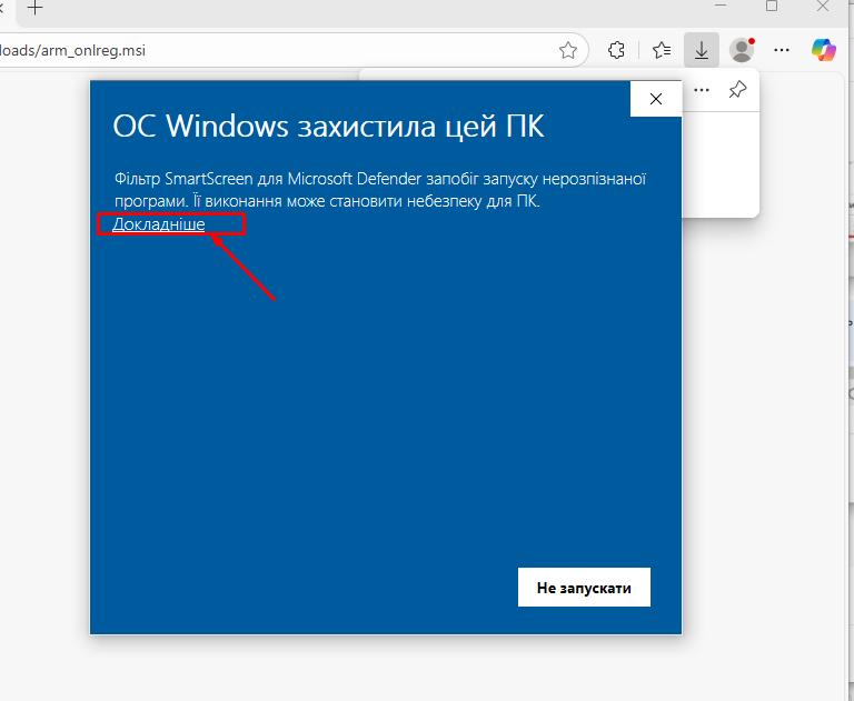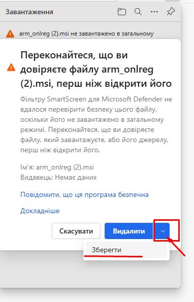 Під час інсталяції програми, також можуть з’являтись повідомлення вже безпосередньо від служби безпеки Windows: