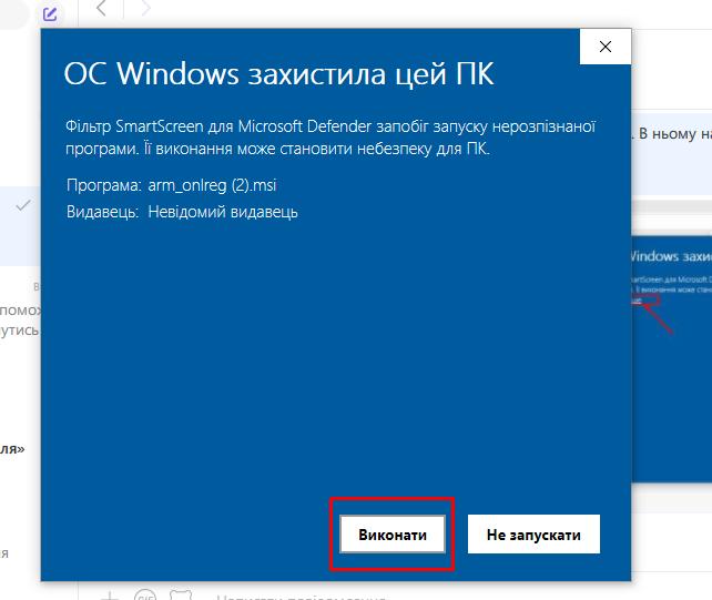 Вікно розгорнеться , зявиться кнопка “Виконати”, якщо її натиснути, розочнеться вже процес встанвлення програми або оновлення в залежності від файло, який скачувався.