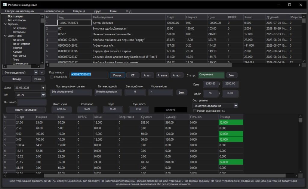 Підтримка всіх типів накладних (прибуткові, видаткові, списання, переміщення, повернення). Переоцінка за накладними, фіскальні та нефіскальні накладні, імпорт та експорт документів. Темна та світла схеми інтерфейсу. Зацікавились? Замовте безкоштовну повну версію програми.