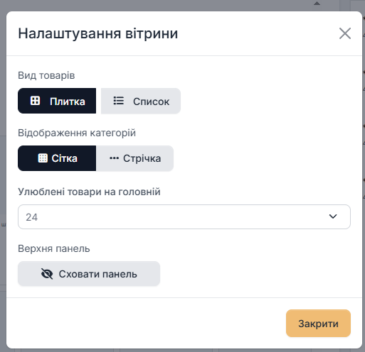 - Товари у вигляді плиток або списком.