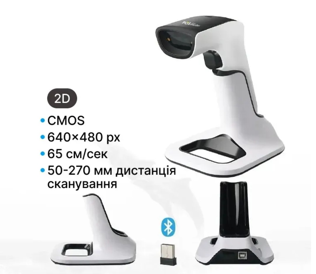 Бездротовий BlueTooth сканер штрих кодів 1D і 2D. Зчитувач штрих-кодів з базою для підзарядки